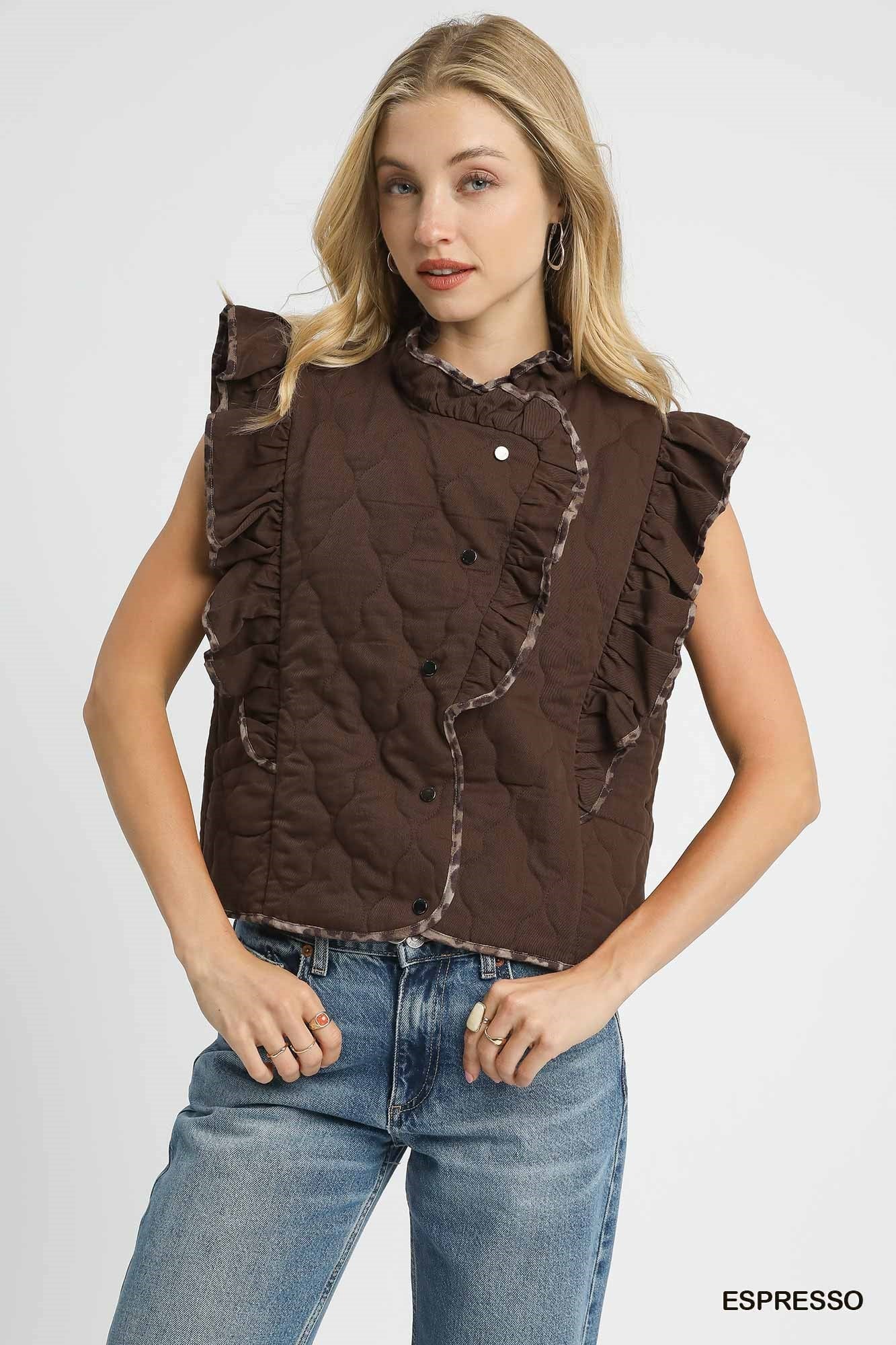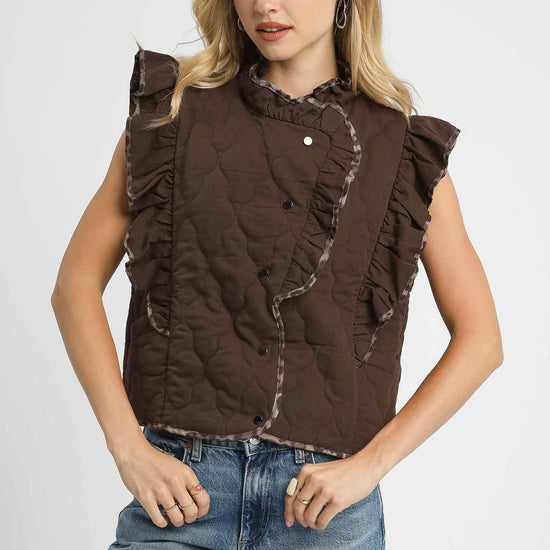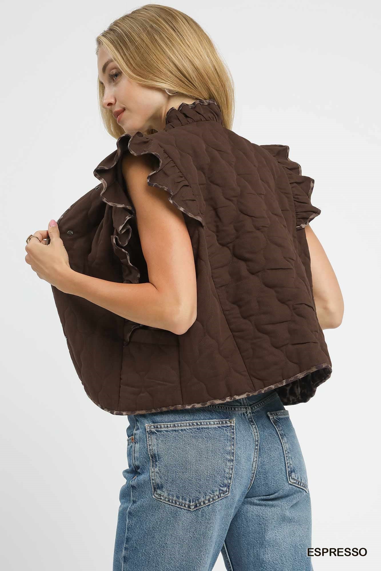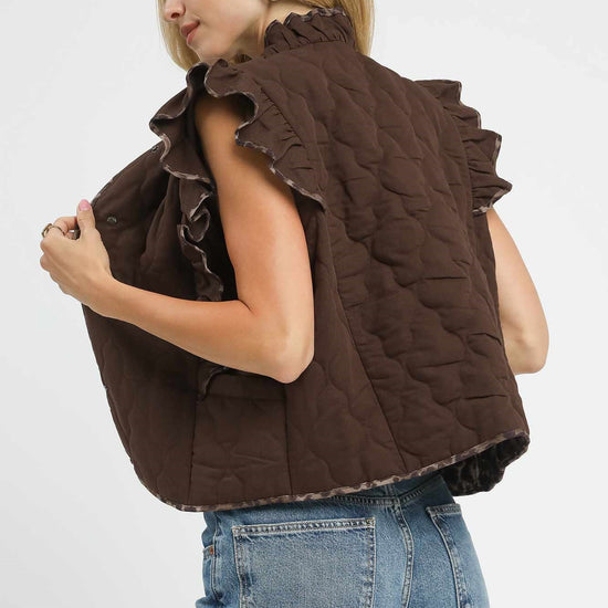 Quilted Ruffle Vest with Leopard Trim