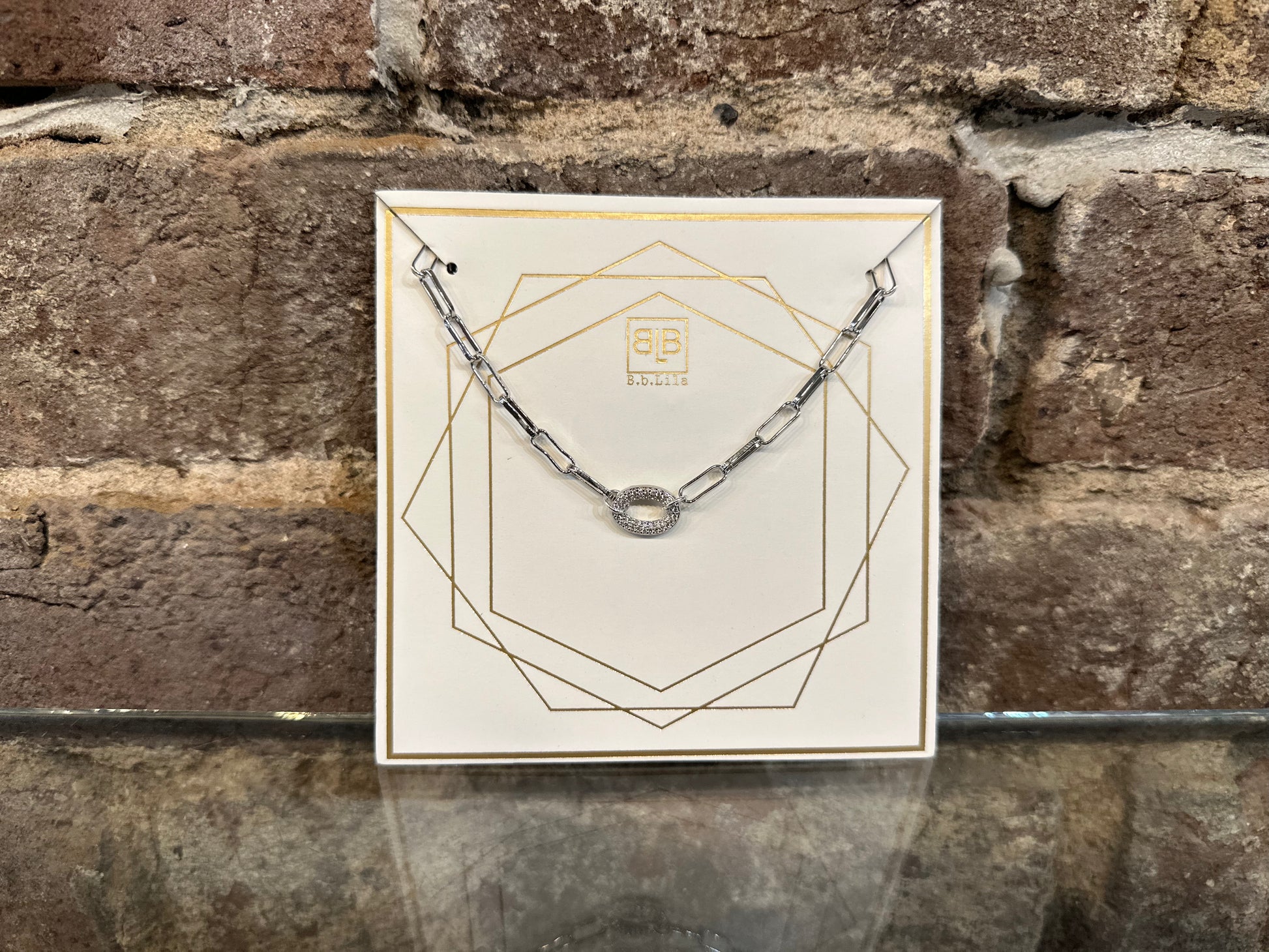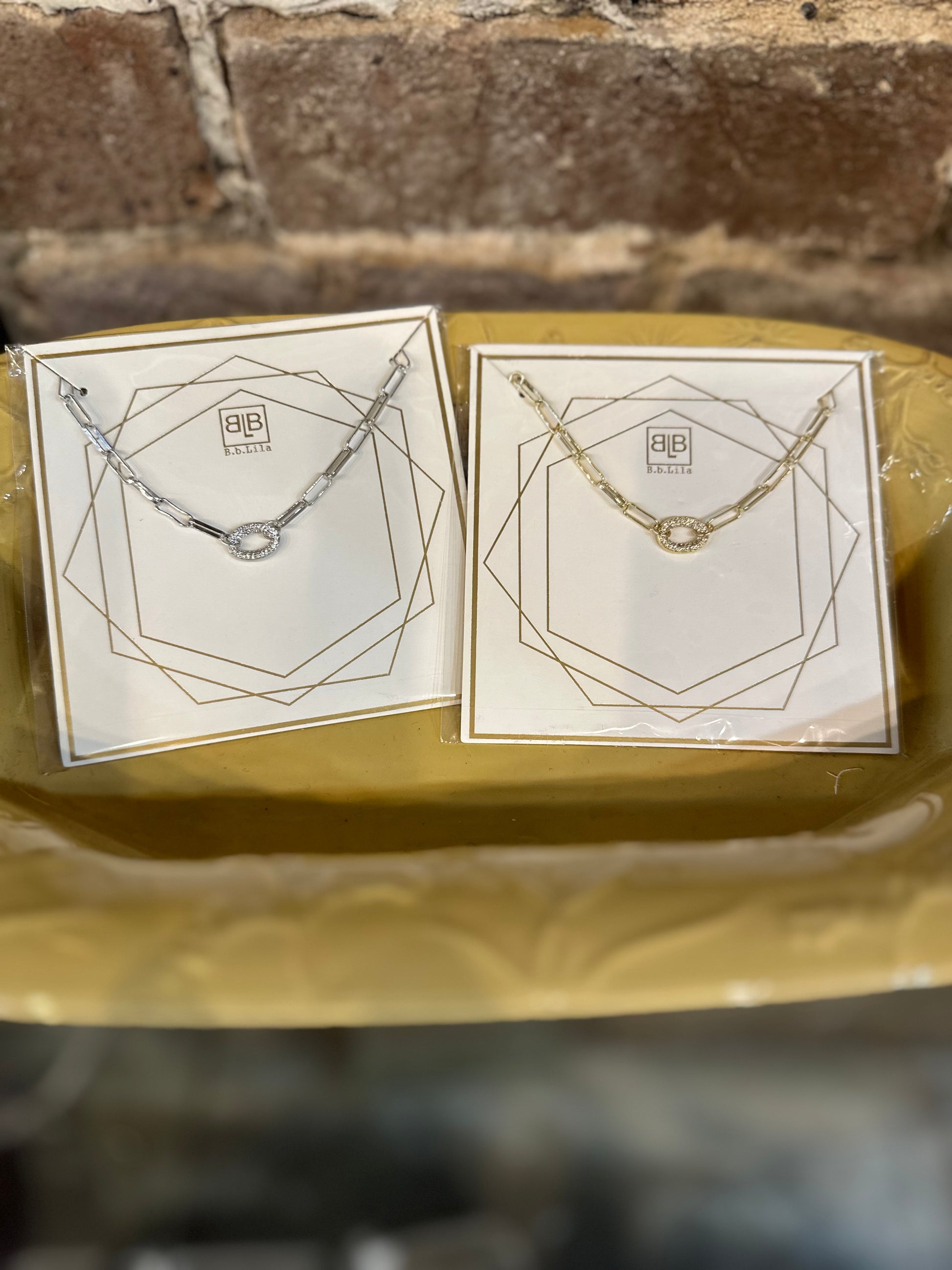 Paperclip Chain, 15" with Pave' Link Center in Gold or Silver