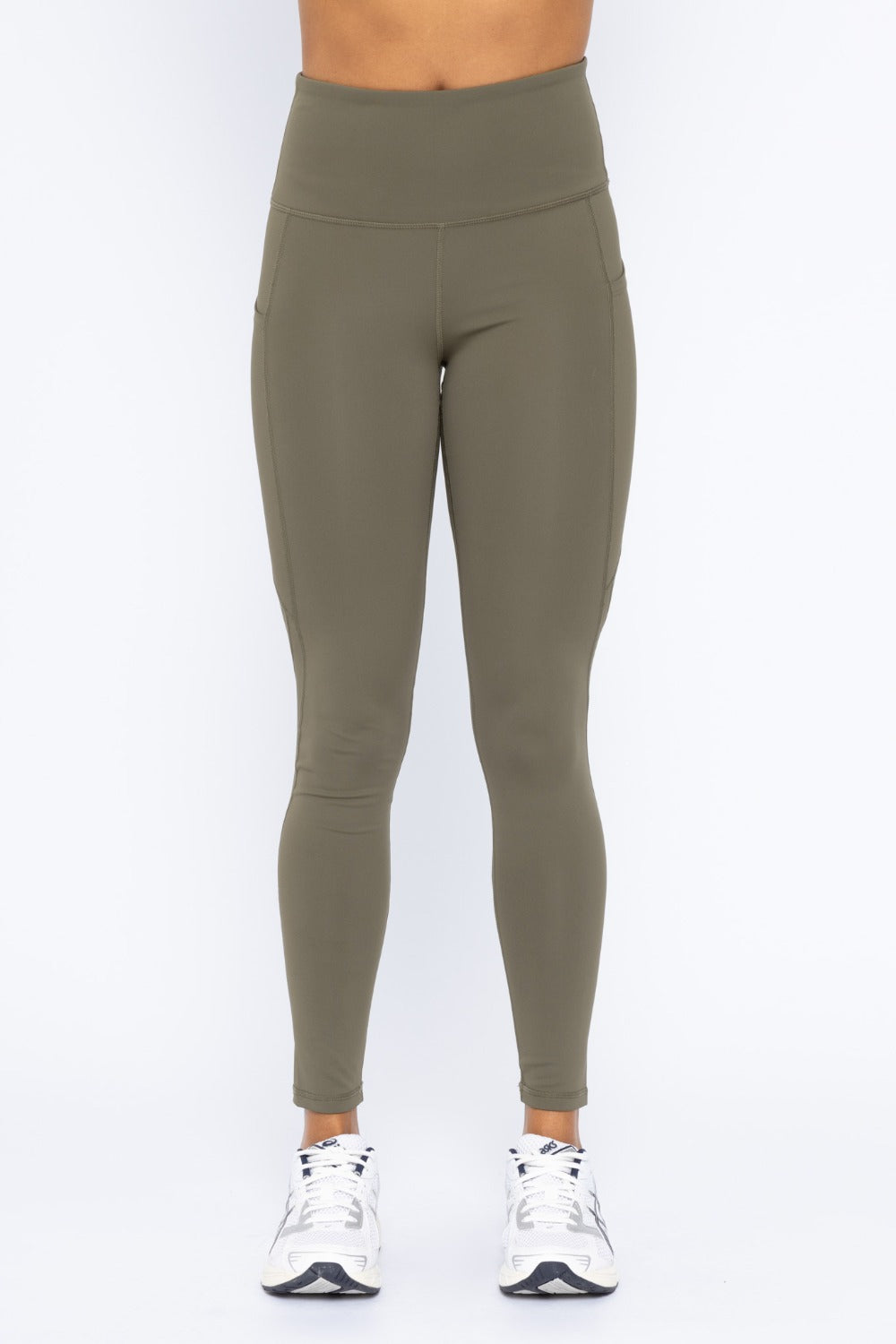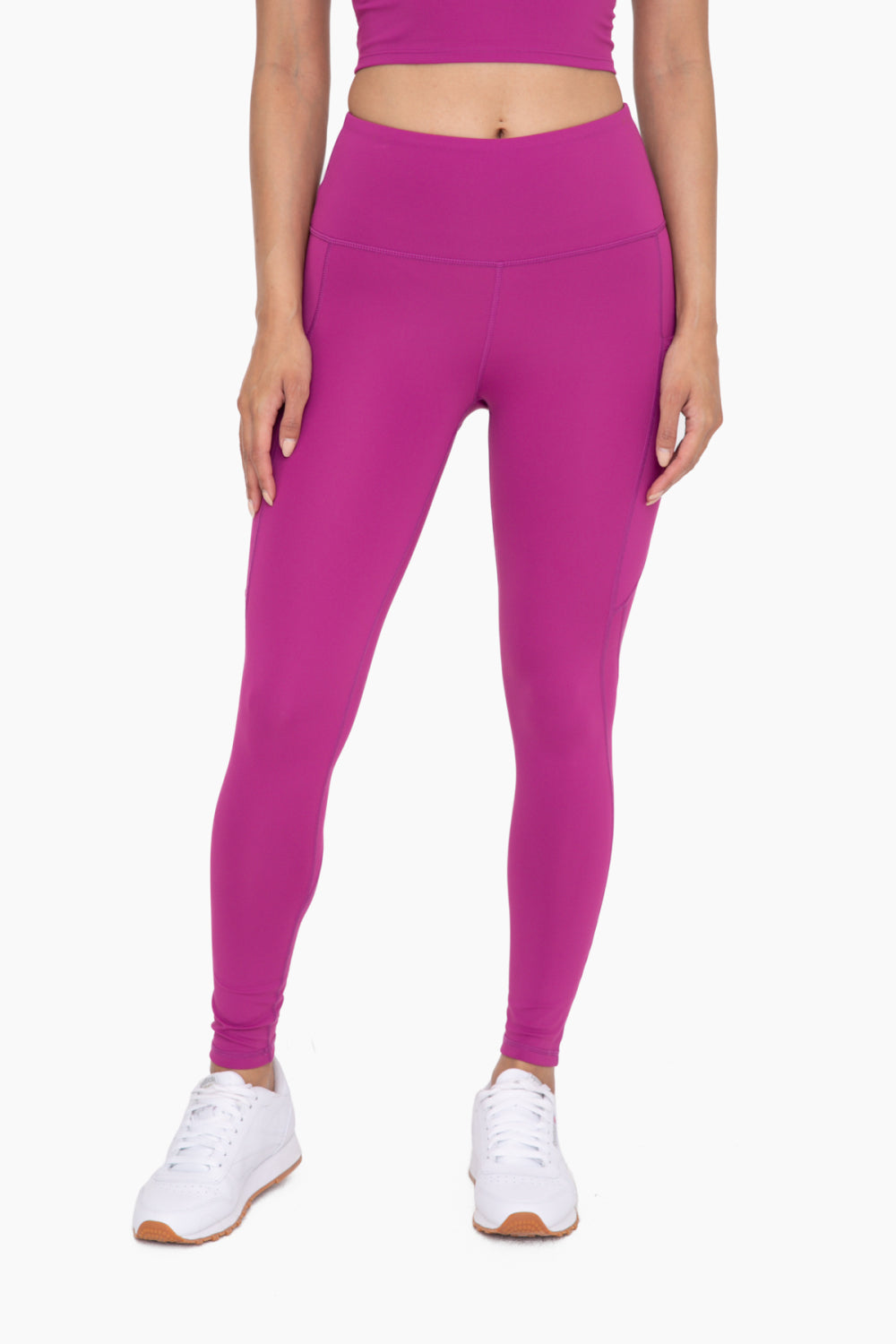 Functional and fashionable, these solid-colored leggings have a high waistband for abs support, side pockets, as well as strategic patterns for a flattering silhouette.