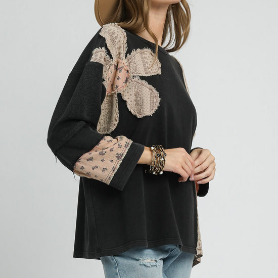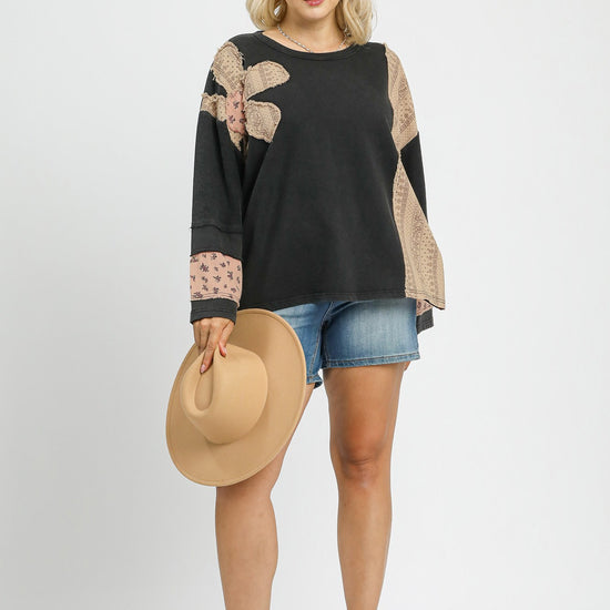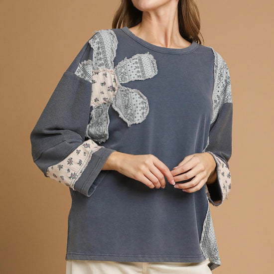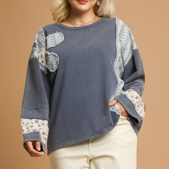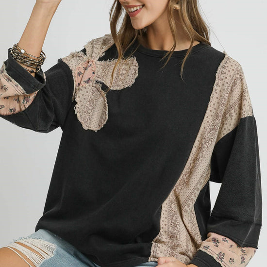 French Terry Patchwork Sleeve Pullover
