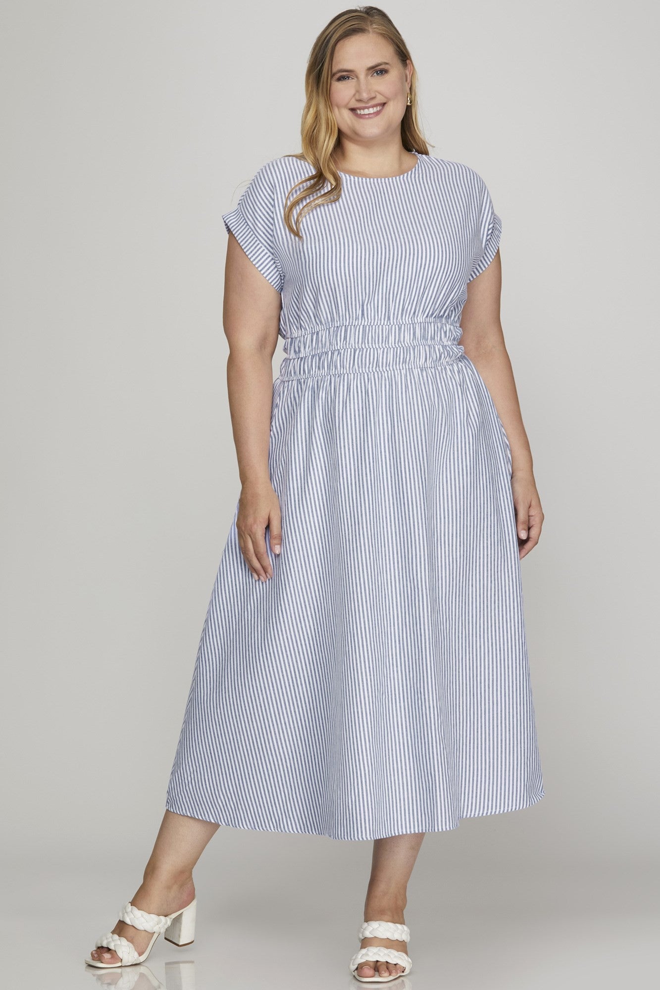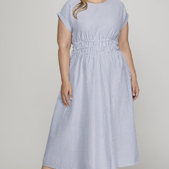 Drop Shoulder Striped Midi Dress w/ Pockets