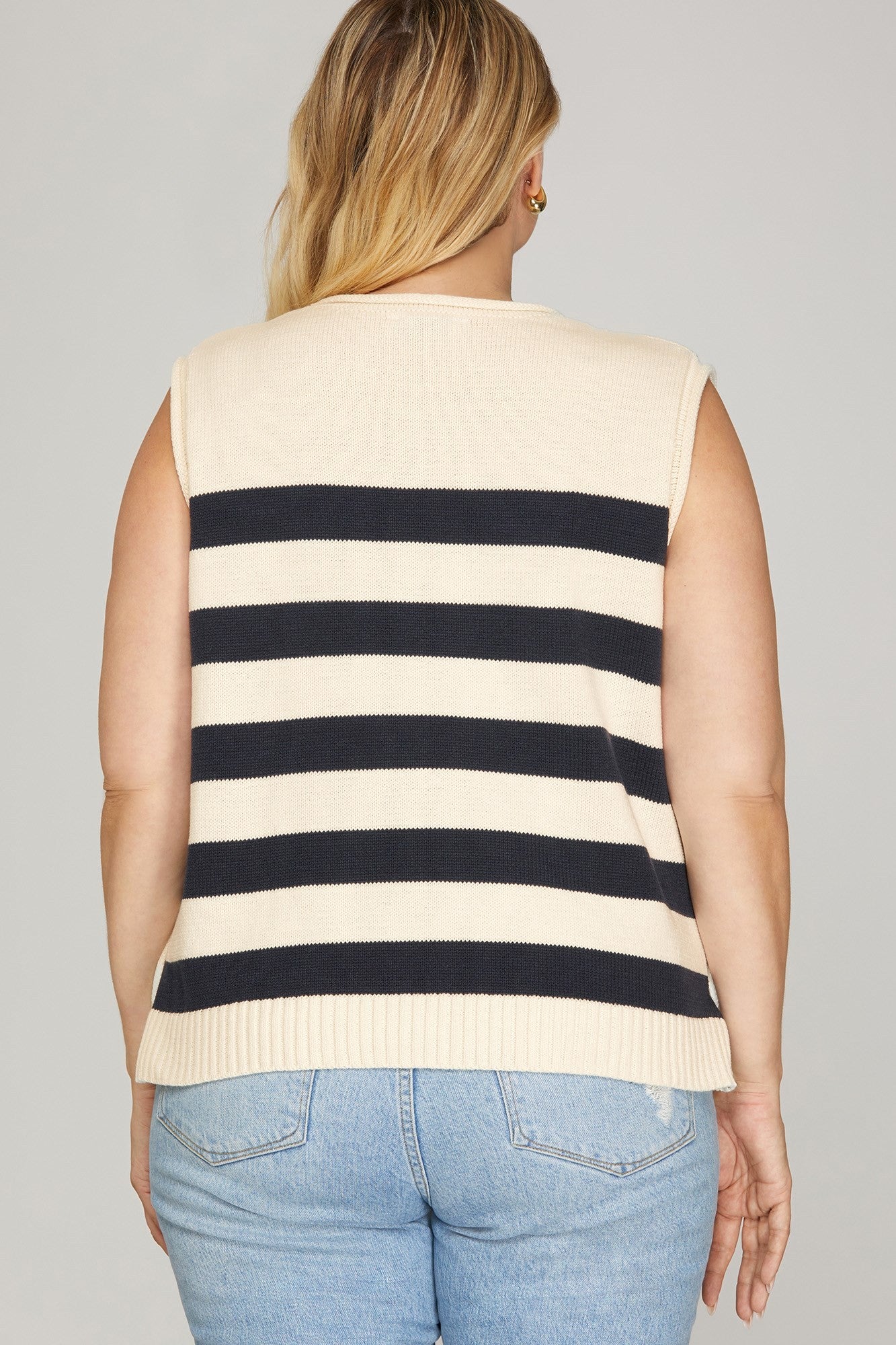 Sleeveless Stripe Sweater with gold buttons on the side