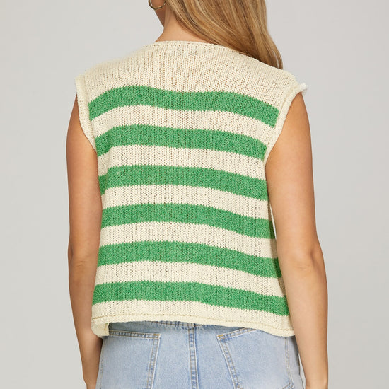 Sleeveless, Striped, Button-Down Knit Sweater Vest