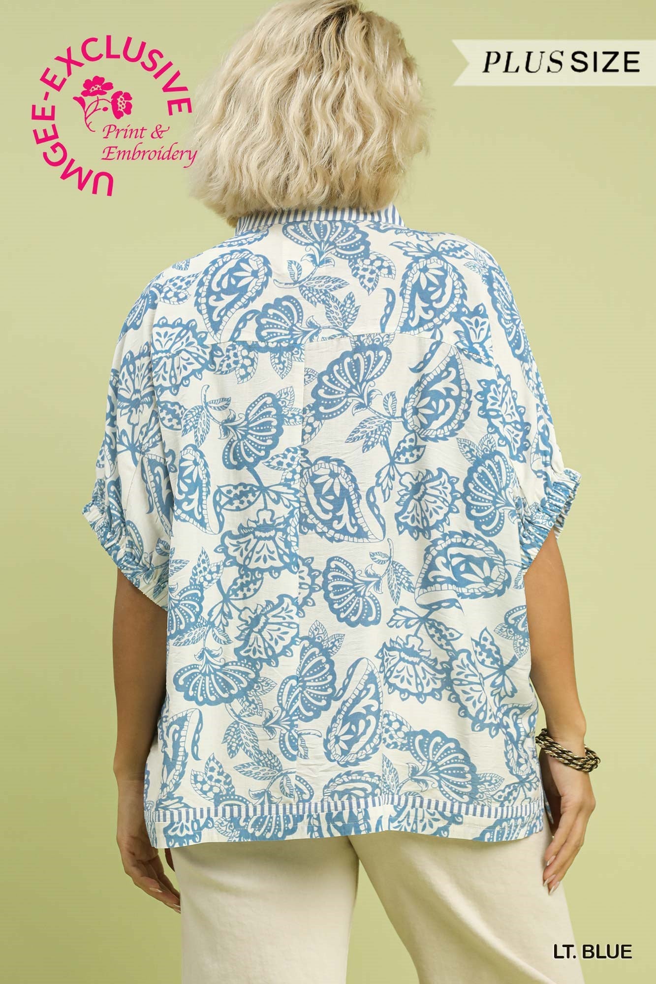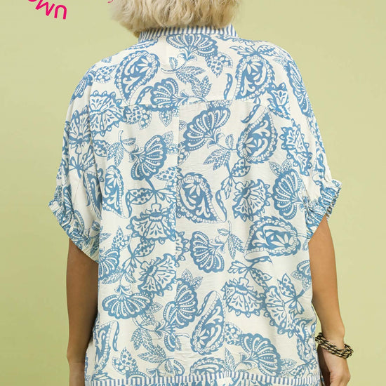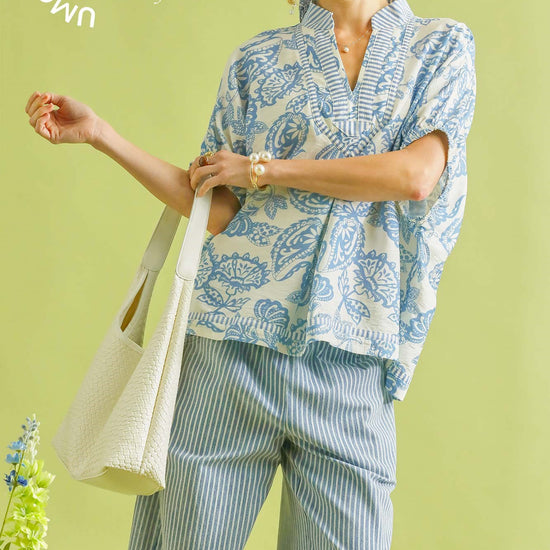 Botanical Print Mixed Trim Tunic Top