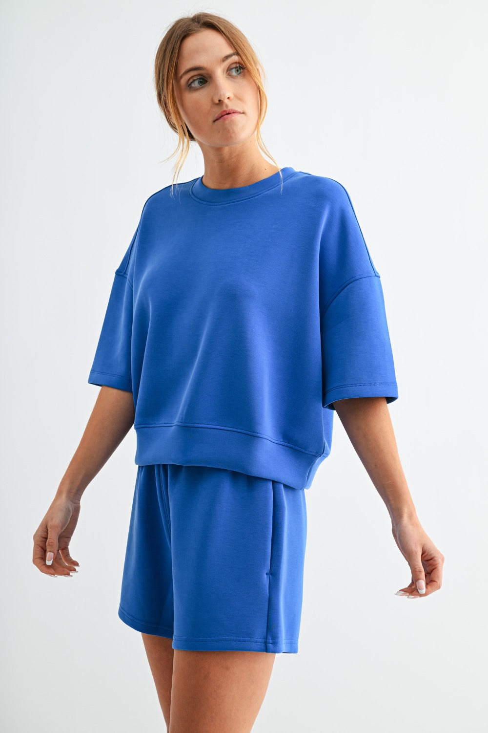 Meet your new go-to for effortless comfort — the Laguna Scuba Weekender Lounge Set. Made from our signature sand-washed scuba fabric with a buttery-soft, spongy hand feel, this matching tee and short duo features a relaxed, drop-shoulder silhouette with a slightly cropped fit. The shorts are designed with an elastic waistband and side pockets for an easy, laid-back look that feels as good as it looks.